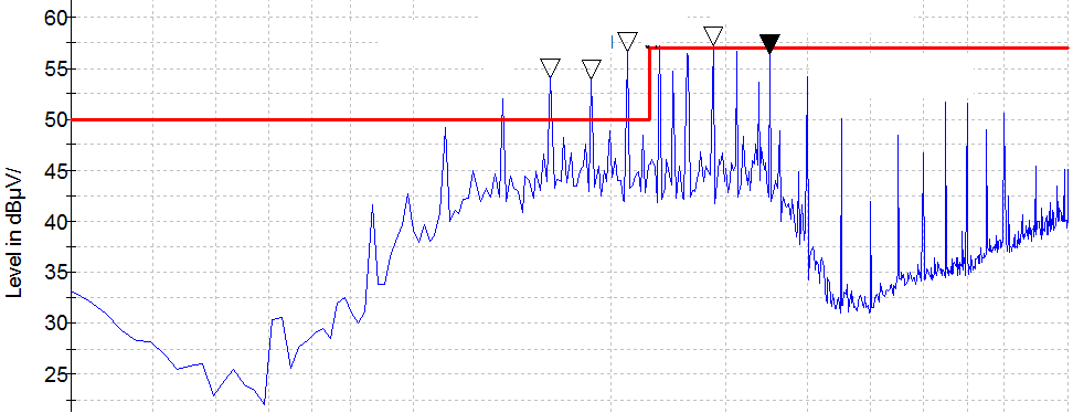 圖1 早期串口屏輻射發射騷擾度波形
